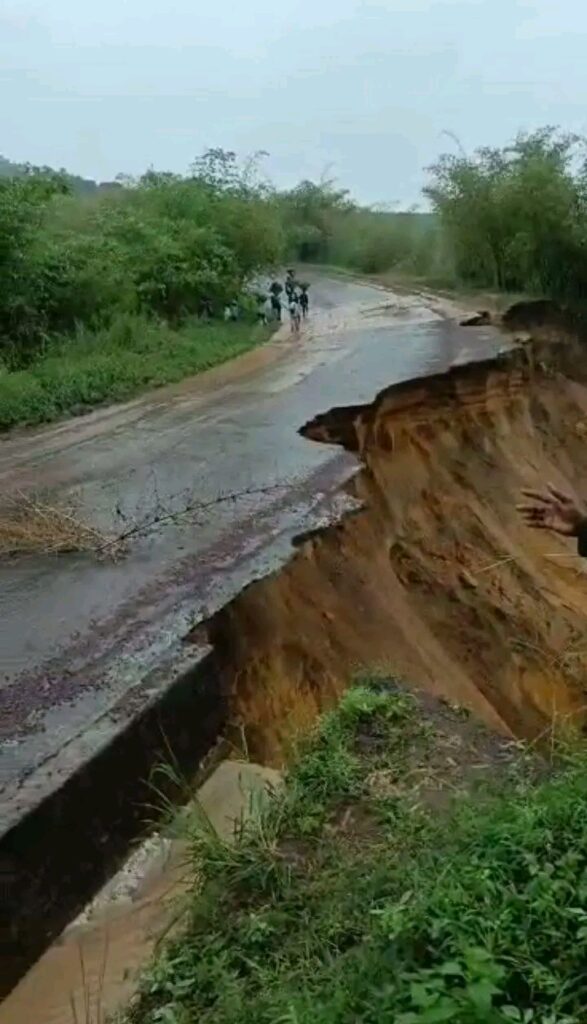 Le point critique de l’effondrement se situe au niveau du coin dénommé « 9 étages », en direction de Kinshasa. Il s’agit d’un tronçon stratégique qui relie la capitale Kinshasa au Kongo Central, un axe essentiel pour l’économie nationale et le transport des marchandises.