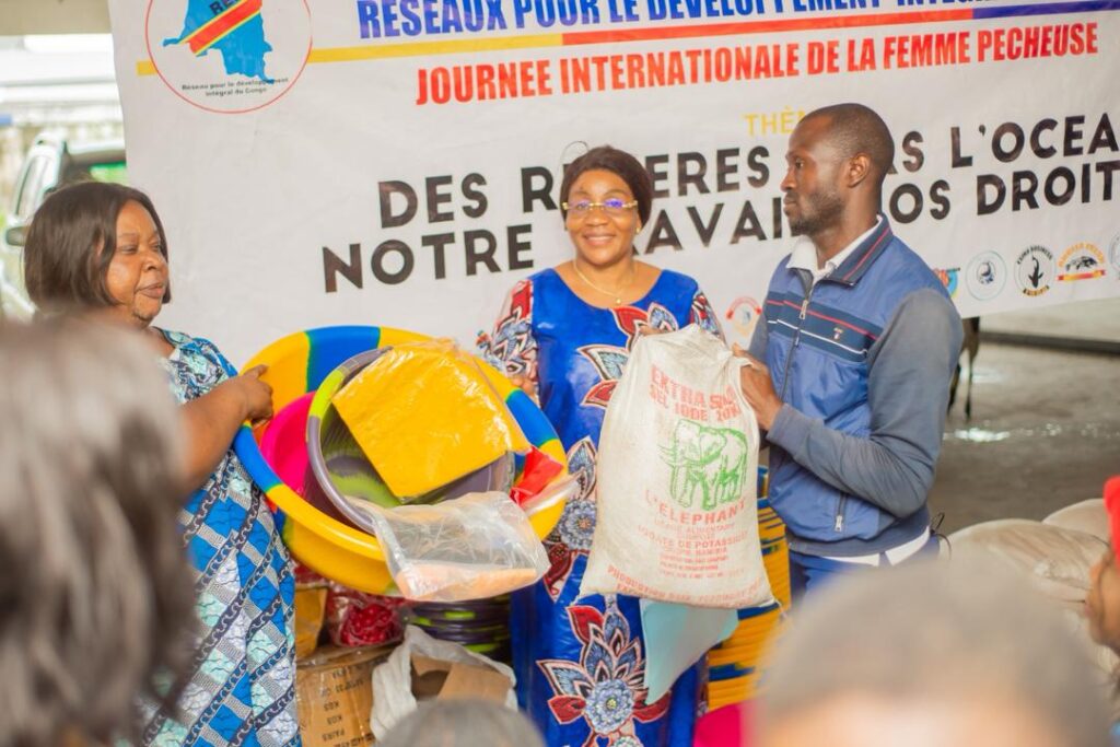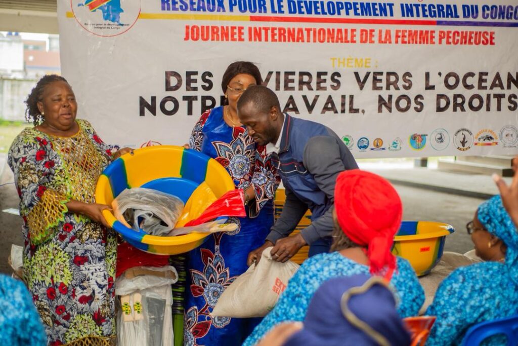 Dans une ambiance de joie et de reconnaissance, plus de 100 femmes pêcheuses, mareyeuses et transformatrices membres du Réseau pour le Développement Intégral du Congo (REDIC-AWFISHNET-RDC) ont reçu, ce lundi 10 novembre, des kits complets d’intrants pour la transformation de poisson.