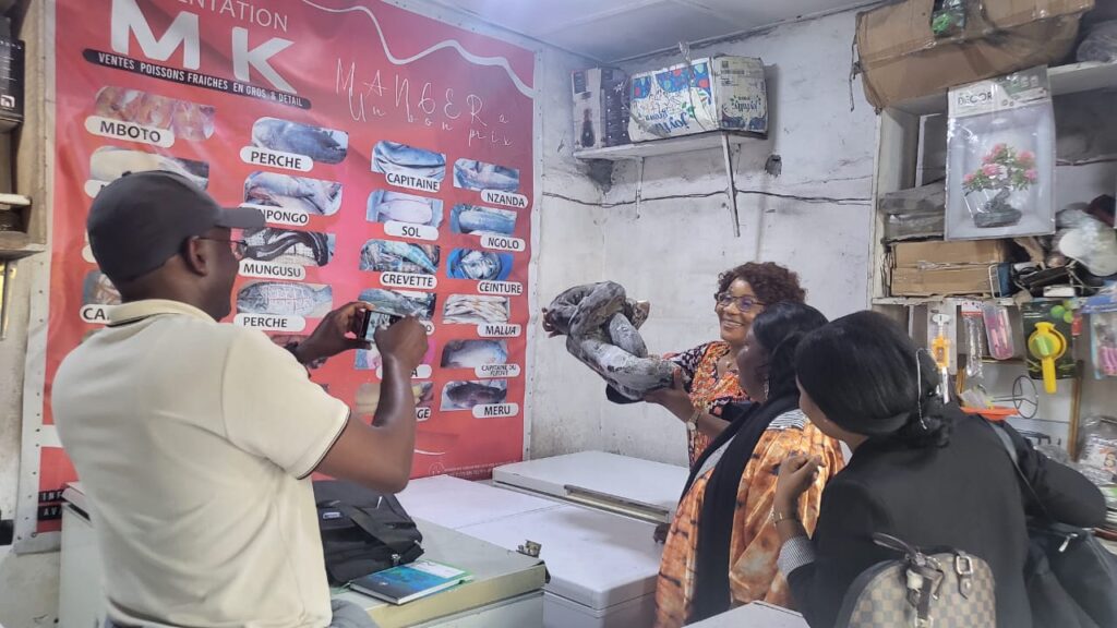 Les visiteurs ont pu constater de visu les conditions dans lesquelles les produits halieutiques — poissons salés, frais ou transformés — sont traités et commercialisés. Les membres de REDIC ont exprimé leurs difficultés récurrentes : absence de chambres froides, manque d’infrastructures de transport adéquates, notamment pour la liaison Moanda–Kinshasa, et absence de marchés dédiés au poisson.