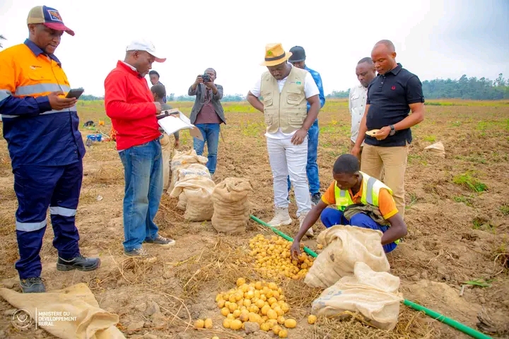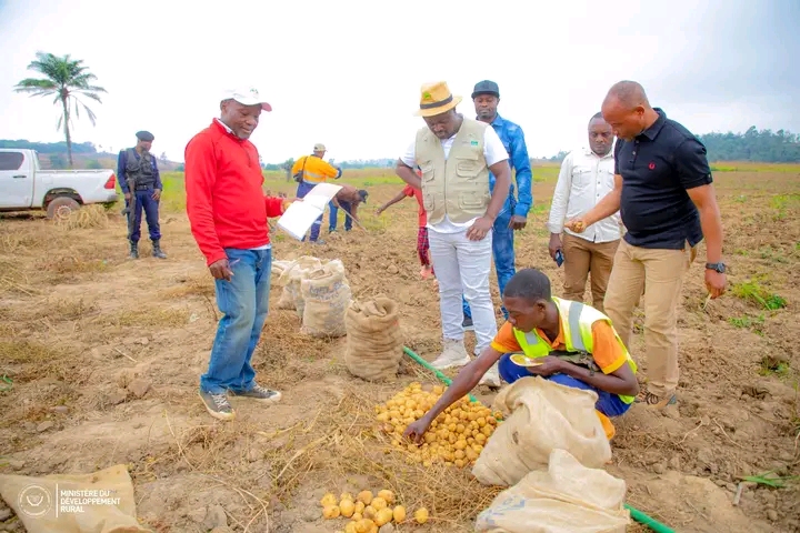 Trois mois après le lancement des essais agricoles en partenariat avec la société italienne Amica Chips, la culture de la pomme de terre dans la région de Mbanza-ngungu (Kongo Central) affiche des résultats encourageants. En déplacement dans la zone ce week-end, le Ministre du Développement Rural, Son Excellence MUHINDO NZANGI BUTONDO, a personnellement assisté à la clôture de la première phase de cette expérimentation agricole novatrice.